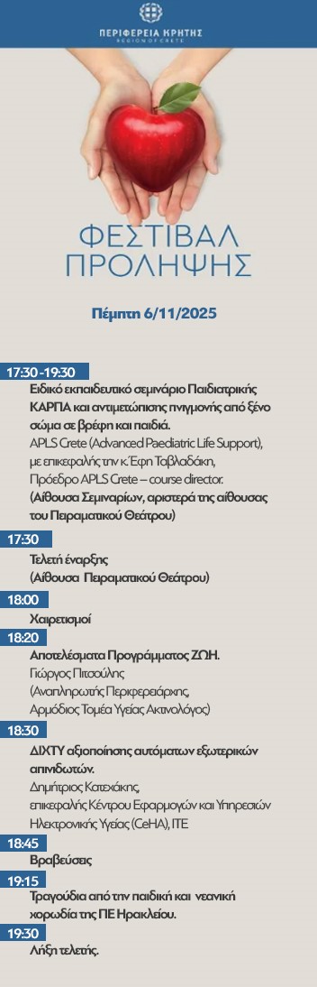 2ο Φεστιβάλ Πρόληψης της Περιφέρειας Κρήτης 6 και 7 Νοεμβρίου στο Πολιτιστικό και Συνεδριακό Κέντρο Ηρακλείου