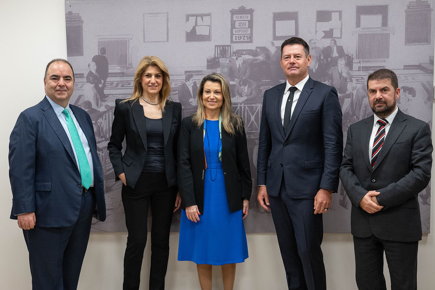 Ο Γιάννoς Κοντόπουλος, Διευθύνων Σύμβουλος του Ομίλου Χρηματιστηρίου Αθηνών, η Νατάσα Στάμου, Β’ Αντιπρόεδρος της Επιτροπής Κεφαλαιαγοράς, η Βασιλική Λαζαράκου, Πρόεδρος της Επιτροπής Κεφαλαιαγοράς, o Karel Komarek, Ιδρυτής και Πρόεδρος της Allwyn, και ο Μιχάλης Φέκκας, Α’ Αντιπρόεδρος της Επιτροπής Κεφαλαιαγοράς