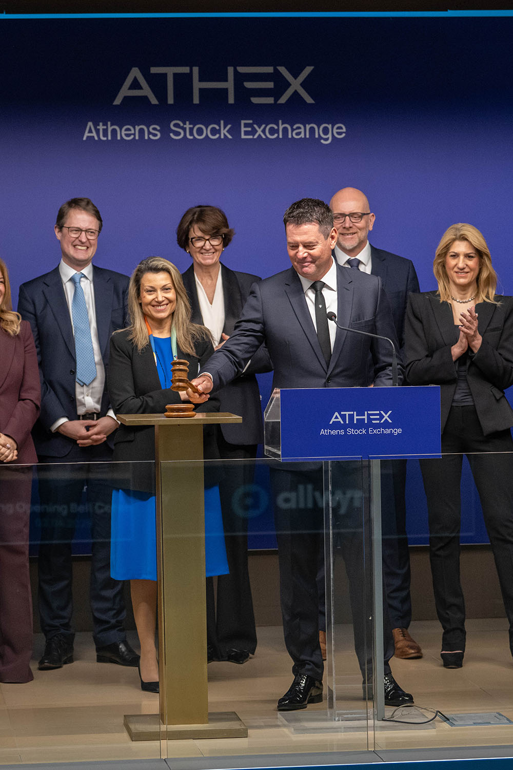 Η Allwyn σηματοδοτεί τη διαπραγμάτευση των μετοχών της στο Χρηματιστήριο Αθηνών με την τελετή έναρξης της συνεδρίασης