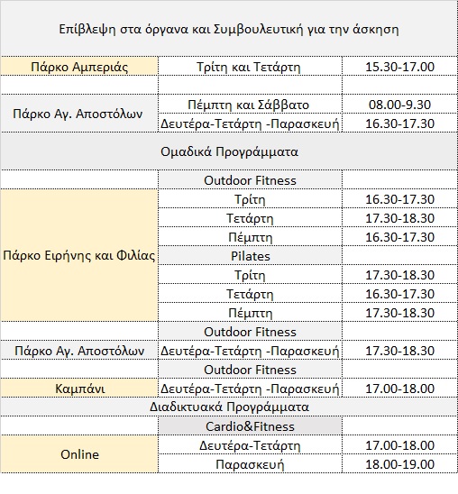 Το πρόγραμμα των νέων αθλητικών προγραμμάτων είναι το εξής: