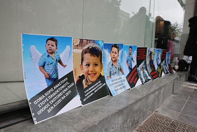 Έξω από τα δικαστήρια έχουν συγκεντρωθεί πολίτες, καθώς και μέλη του Σωματείου «Άγγελος Προστάτης», που δημιουργήθηκε στη μνήμη του 3χρονου, κρατώντας πανό με συνθήματα κατά της παιδικής κακοποίησης και ζητώντας δικαίωση «για όλους τους Αγγέλους».