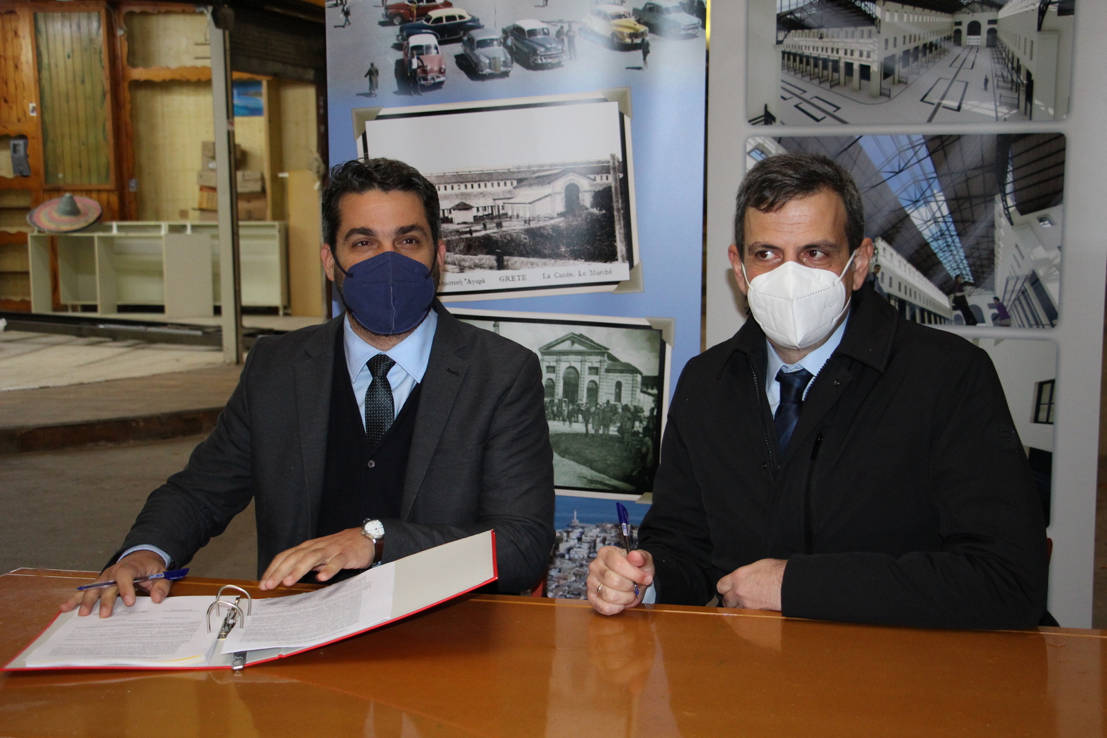 Στην υπογραφή της σύμβασης για την ανακατασκευή της Δημοτικής Αγοράς Χανίων, που σηματοδοτεί την επίσημη έναρξη των εργασιών στο ιστορικό μνημείο, προχώρησαν σήμερα, Πέμπτη, 13/01/2022, ο Δήμαρχος Χανίων, Παναγιώτης Σημανδηράκης και ο εκπρόσωπος της αναδόχου εταιρίας «ΤΟΜΗ ΑΒΕΤΕ», κ. Γεώργιος Κωτούλας.