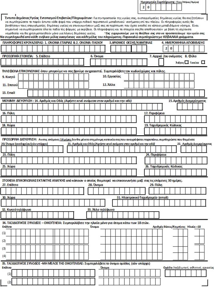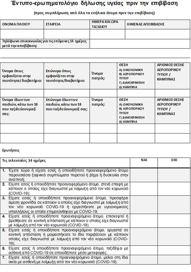 Εως και 48 ώρες πριν αναχωρήσουν για την Ελλάδα, οι ταξιδιώτες υποχρεωτικά θα συμπληρώνουν στον υπολογιστή ή μέσω εφαρμογής στο κινητό μία φόρμα με τα στοιχεία τους και δεδομένα, όπως για παράδειγμα τη χώρα προέλευσής τους, από ποιες άλλες χώρες πέρασαν, που βρίσκονταν το τελευταίο 15ήμερο.