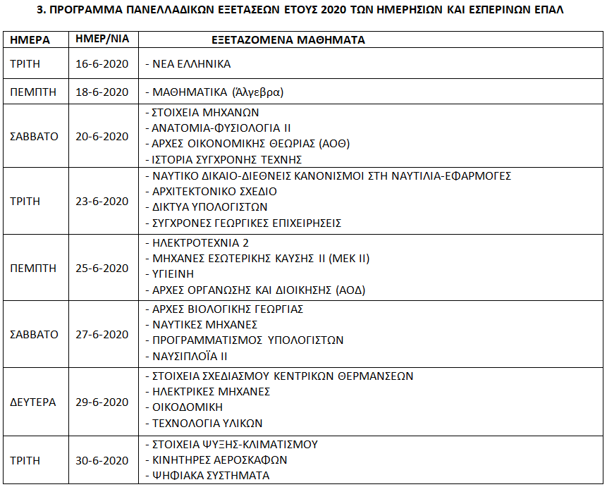 Οι εξετάσεις των ειδικών μαθημάτων θα πραγματοποιηθούν από την 1η έως την 13η Ιουλίου 2020, στο πλαίσιο των Πανελλαδικών Εξετάσεων 2020.