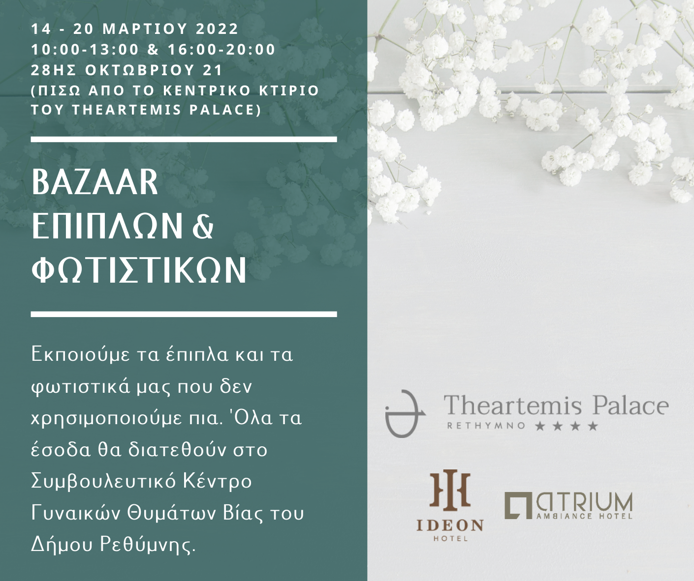 Ρέθυμνο: Μεγάλο Bazaar επίπλων και φωτιστικών για τις γυναίκες θύματα βίας