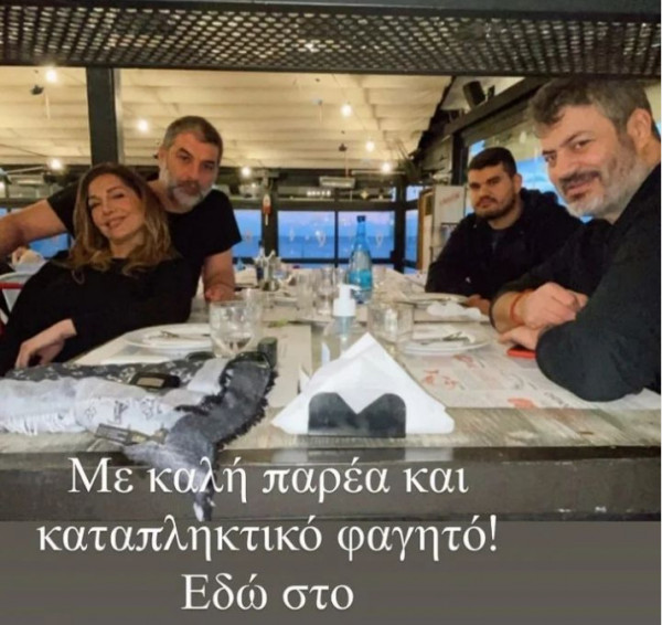 Το ζευγάρι βρέθηκε για φαγητό στην Πειραϊκή μαζί με τον καλό του φίλο, Μανώλη Κονταρό, και τον γιο του, Ιάκωβο, και η τραγουδίστρια θέλησε να μοιραστεί με τους ακολούθους της το σχετικό στιγμιότυπο.